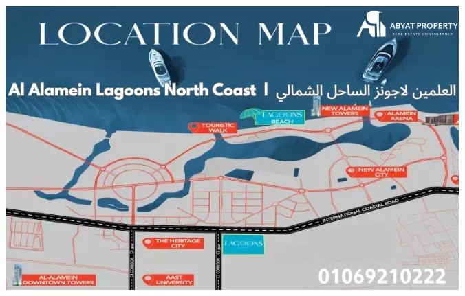 For bookings and inquiries about Al Alamein Lagoons North Coast, please contact the following number: 00201069210222.
